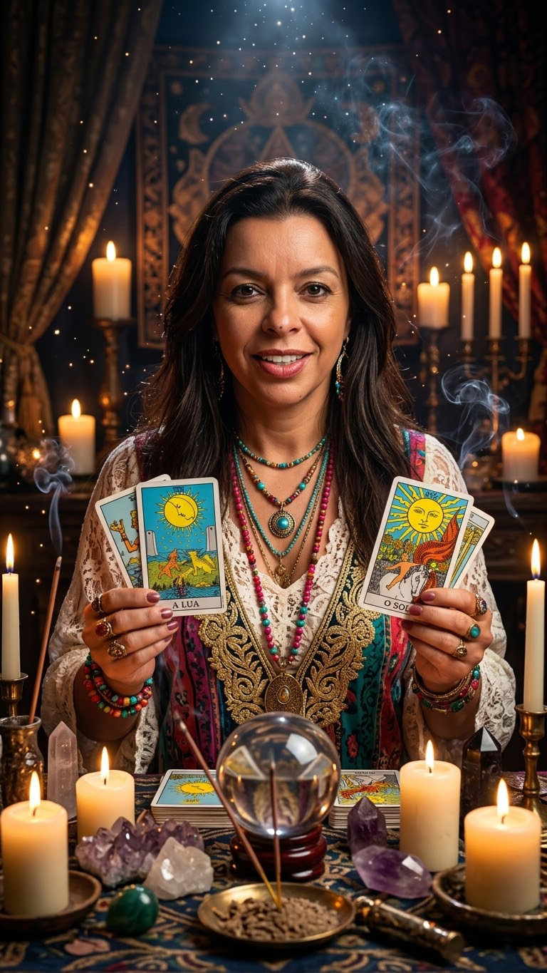 Rituais personalizados com velas especiais, combinando consulta espiritual e cerimônia mística para manifestar seus objetivos